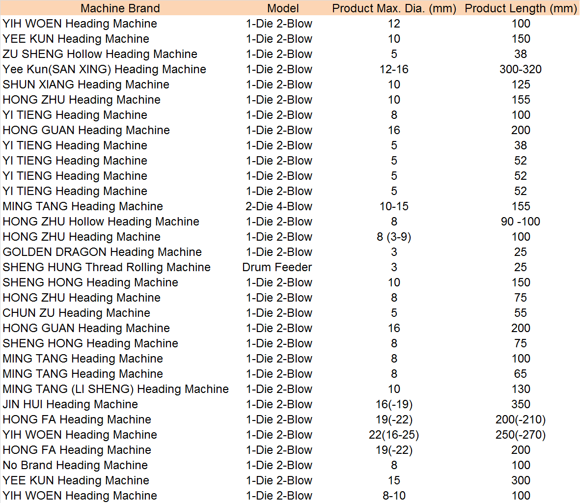 | Keep updating, please contact us for the latest machine list. (2020/4) |